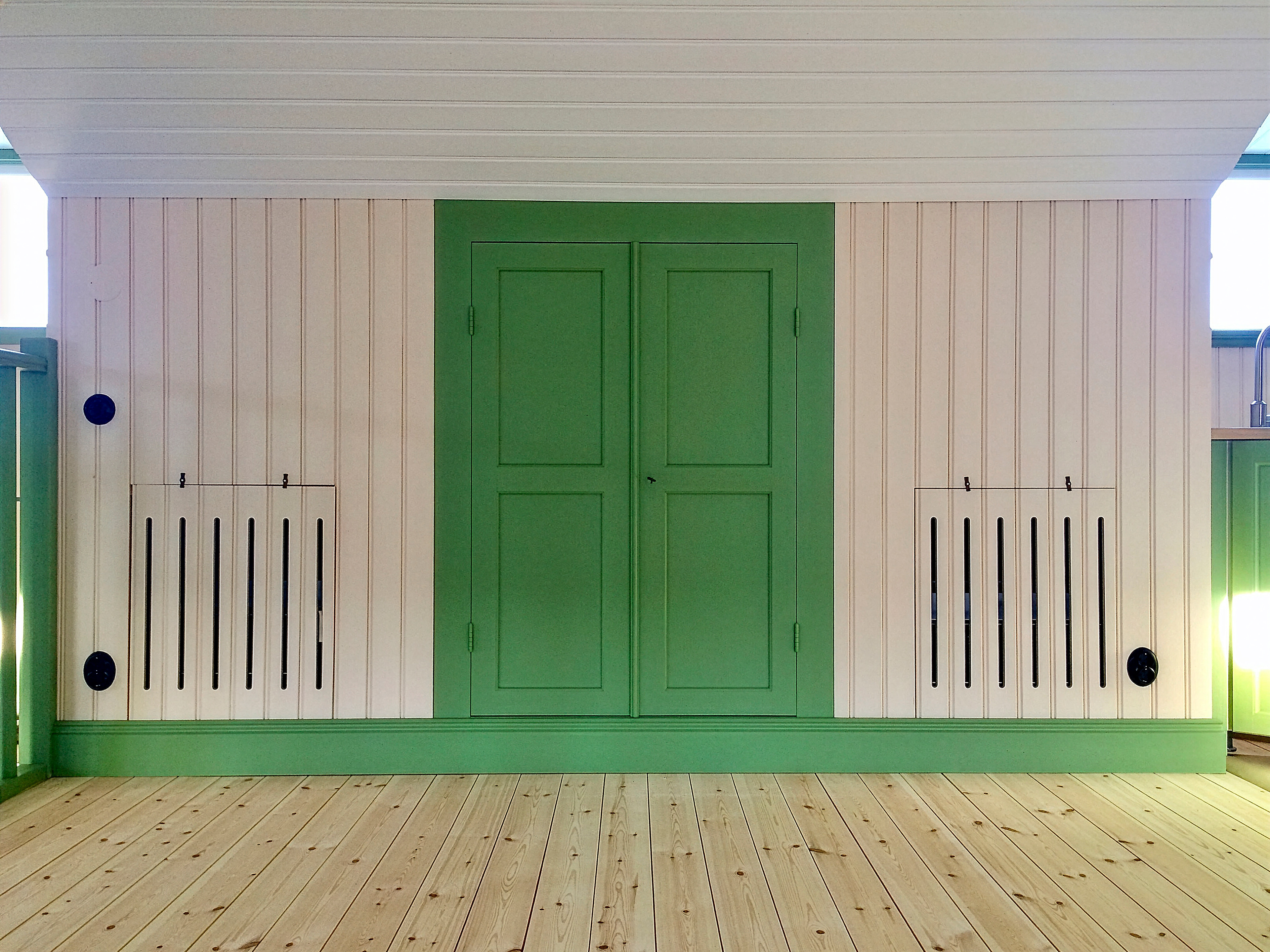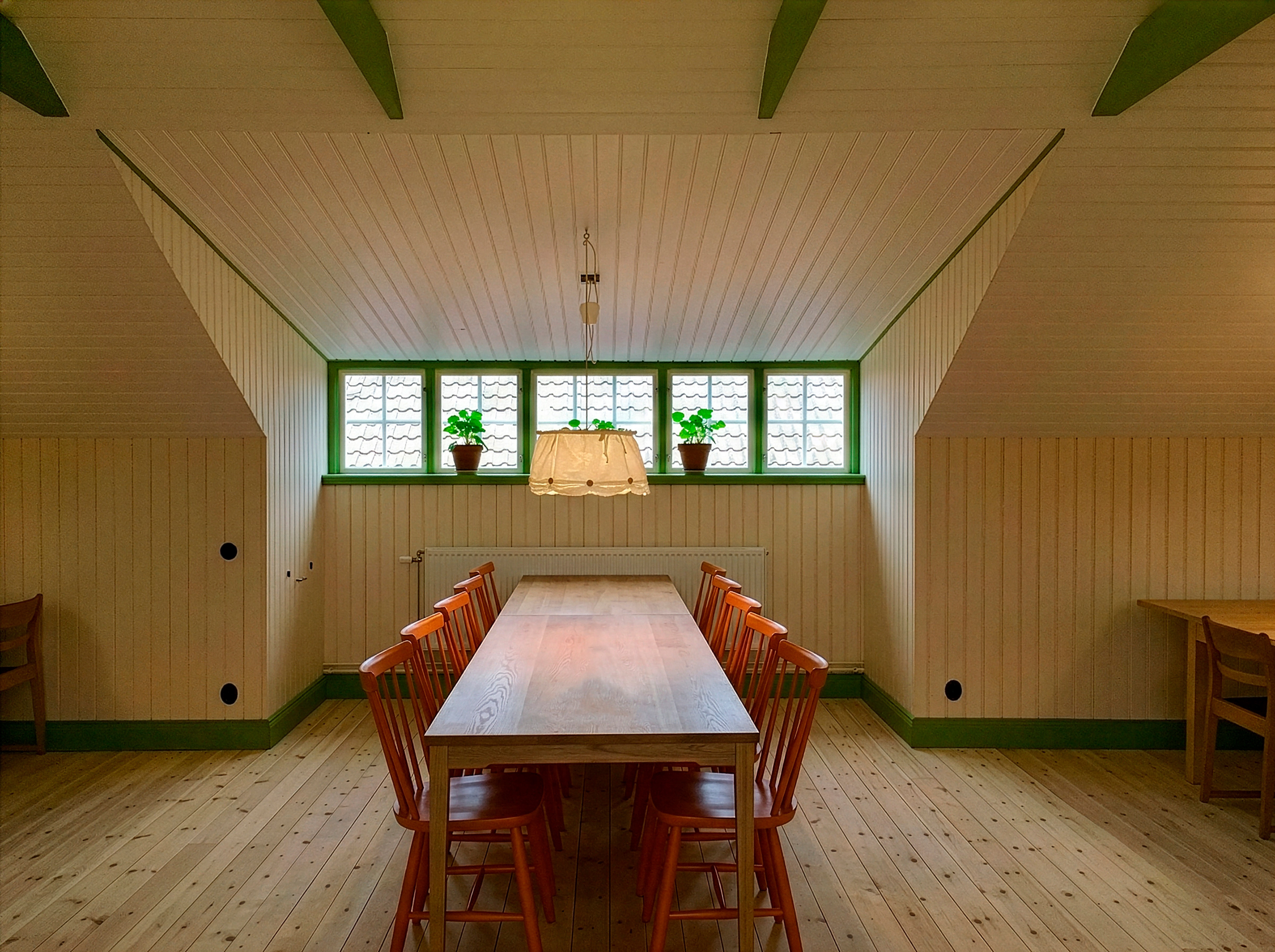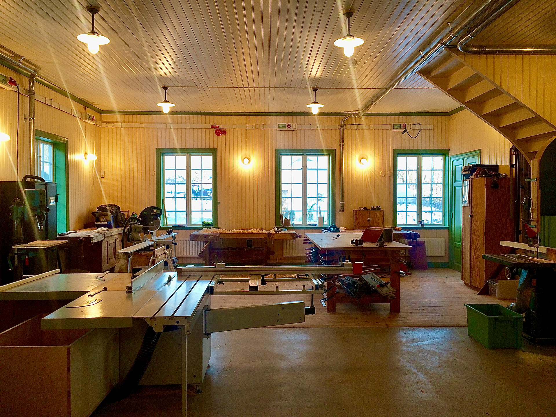 Jag var 2013–15 arkitekt och projektledare för Gunnebo snickeri, som var en del av rekonstruktionen av orangeriet. Snickeriet är utformad som en arkitektonisk pendang till det befintliga skolhuset, placerad på samma avstånd som slottets flyglar, och med en volym snarlik arrendatorsbostaden Solbacken. Med en ramsågad locklistpanel och en färgsättning inspirerad av Skansens Röda länga (1903), smälter snickeriet sömlöst in i Gunnebo lantgårds historiska miljö. Interiören, som rymmer både verkstad och personalmatsal, är klädd i pärlspont med en färgskala hämtad från Ellen Keys Strand (1910). Genom att medvetet förena sekelskiftets formspråk med traditionellt hantverk skapas en byggnad som upplevs som en naturlig och tidlös del av kulturreservatet.