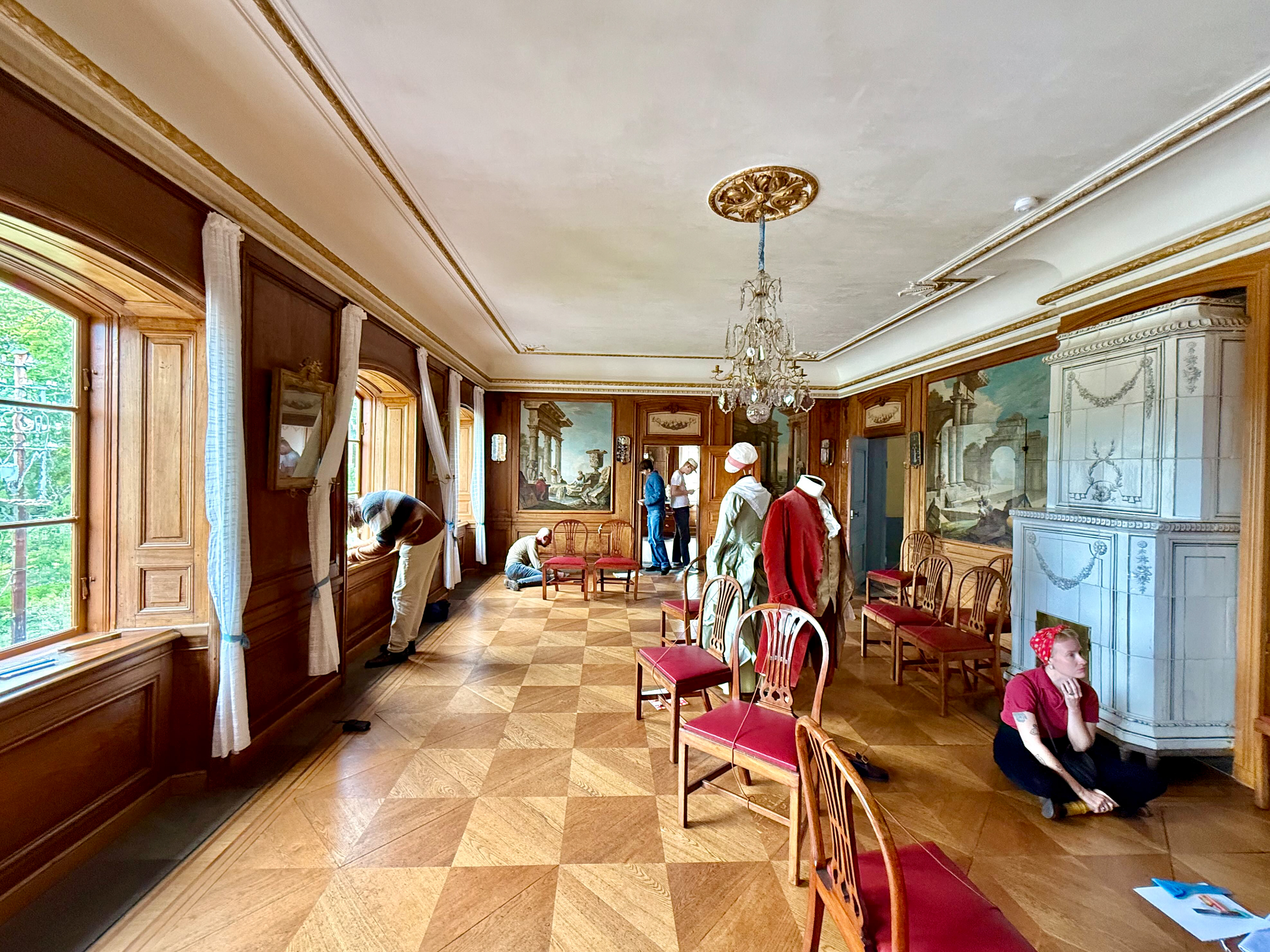 Bild från uppmätningsövning på Totteiska gården på Skansen i samband med kursen Historiska inredningssnickerier hösten 2025 vid Yrkeshögskplan Höga Kursen – TRäakademeien.